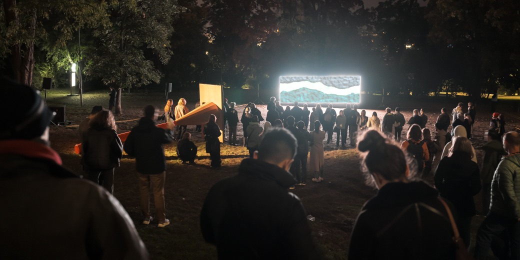 Diváci sledují dílo Davida Přílučíka a kol. (CZ, SK, UA) v Riegrových sadech na pražských Vinohradech. Foto: Signal Fest 2025, Tomáš Slavík